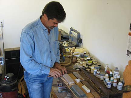 Putting the carving tools to the sharpening stones